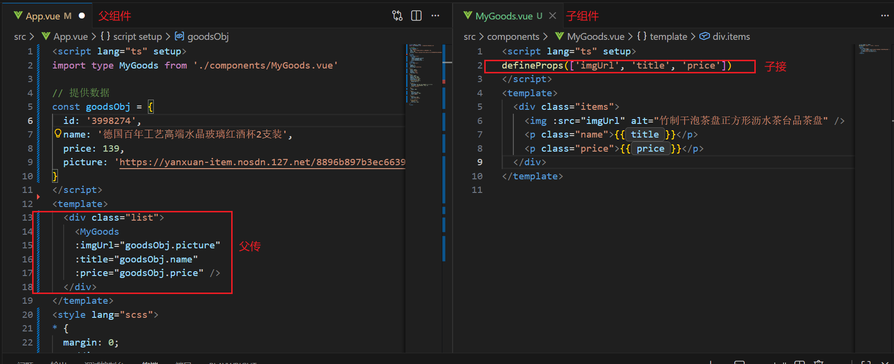 ① 父子关系:谁被使用,谁就是子组件。使用别人的组件就是父组件。