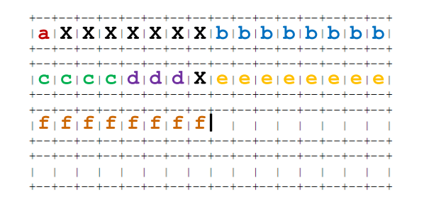 - 展示 foo 在 x86-64 Linux 系统上的内存分配方式。用不同字段的名称标注字节,并清晰地标明结构体的结束。用 X 表示结构体中作为填充分配的空间。