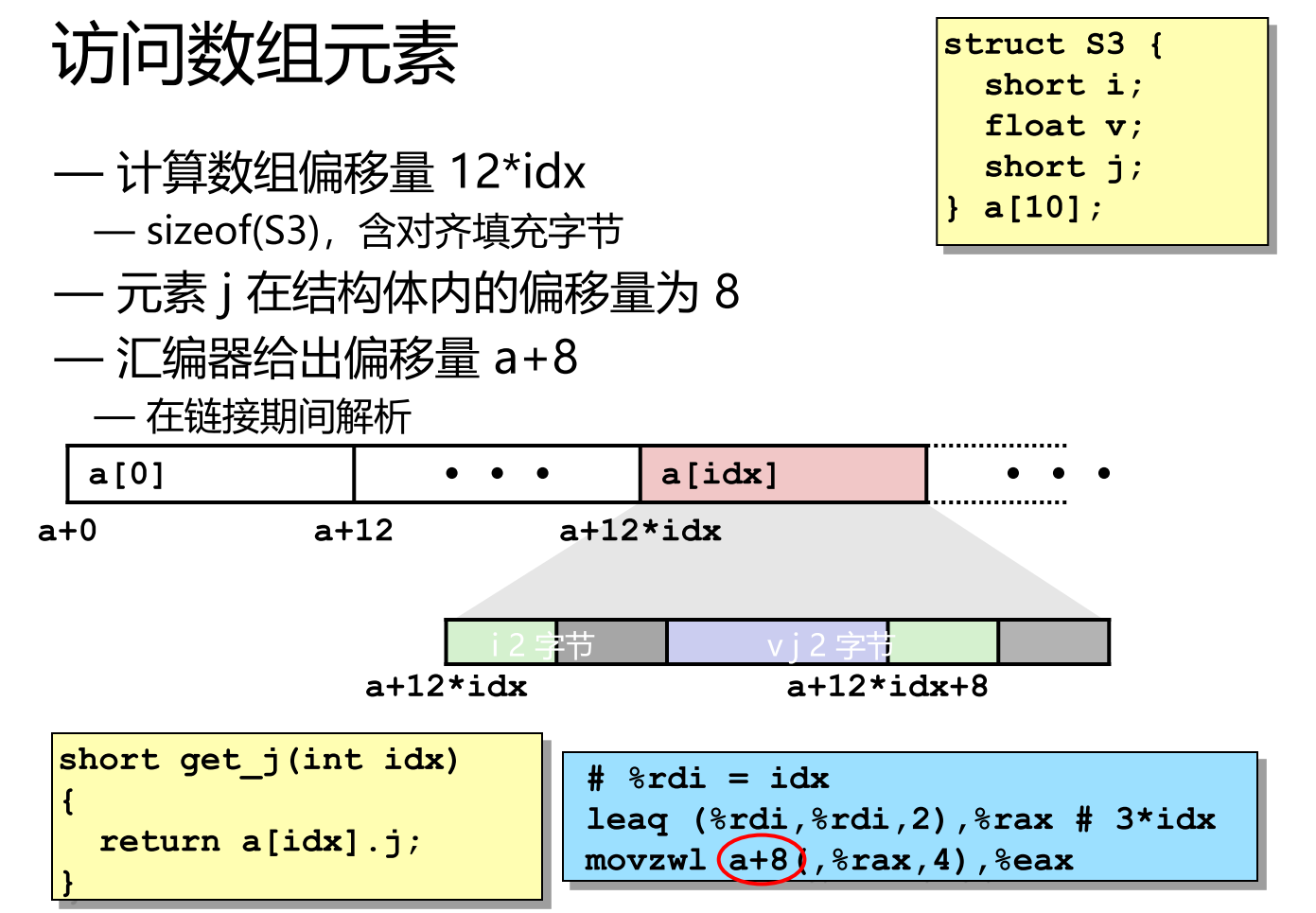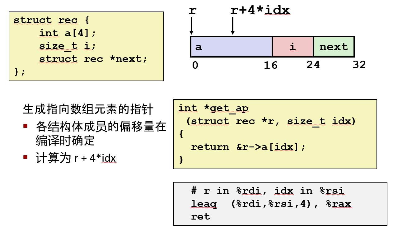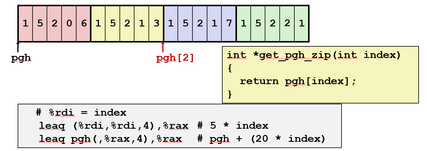 movl (%rdi,%rsi,4), %eax实现z[digit],元素地址计算%rdi + 4 * %rsi。