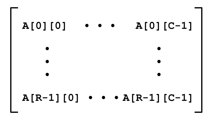 T A[R][C]:表示 R 行 C 列的二维数组。- 总大小:
