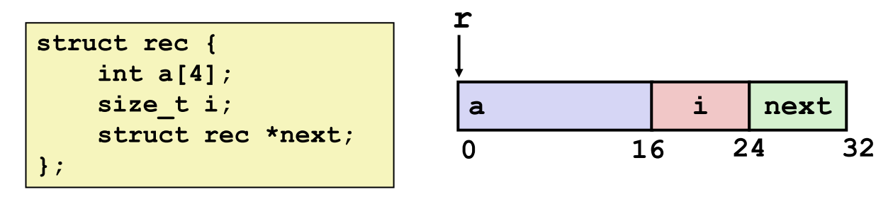 - 结构体以连续内存块表示,一块的大小需要保证容纳所有字段。