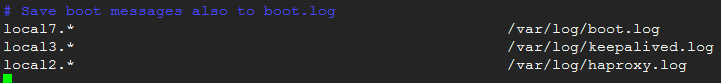 log 127.0.0.1 local2 :日志配置,日志是发送到日志服务器中的facility,所以,本地主机要启动日志服务,此种配置方法,可方便将日志记录到其他日志服务器中。