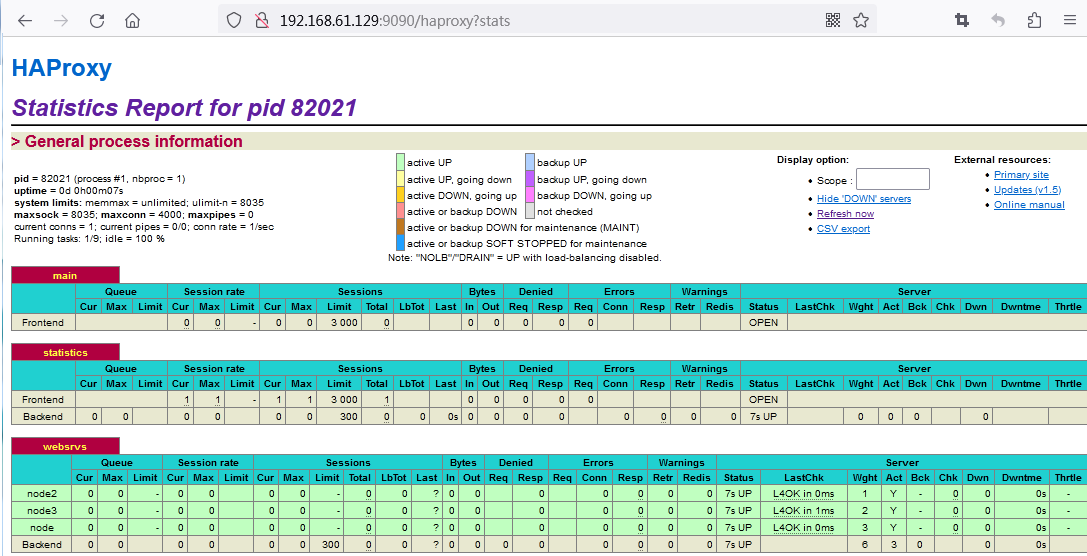 node:定义当前节点的名称,用于HA场景中多haproxy进程共享同一个IP地址时;