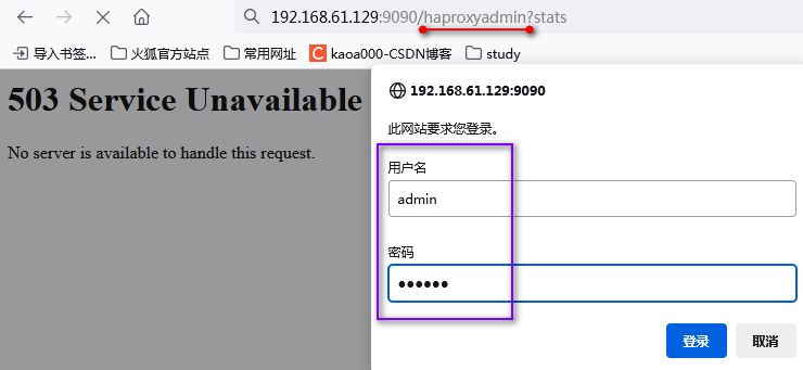 stats realm : "HAProxy Statistics" #登录时的提示信息