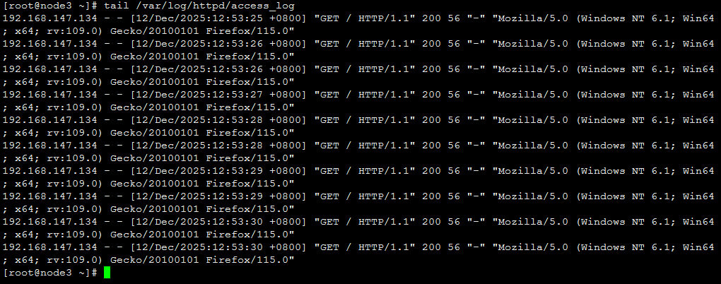可以看到,访问的客户端地址都是192.168.147.134,实际应该记录真正的客户端地址,这对以后的日志分析才有意义。