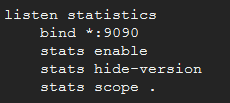 启用基于默认设置的统计报告,不能用于"frontend"区段。只要没有另外的其它设定,它们就会使用如下的配置: