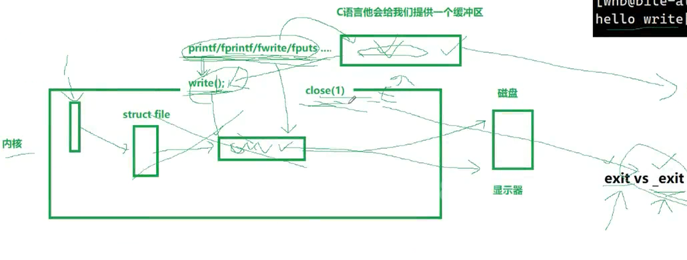文件操作绕不开FILE(struct),EILE->fd FILE 里面还有对应打开文件的缓冲区字段和维护信息 ,像fflush(stdout) !!! 打开10个文件,就有10个语言层的缓冲区