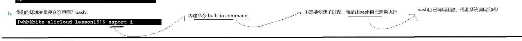 属于export 内建命令( built-In command)不需要创建子进程,而是让bash自己亲自执行