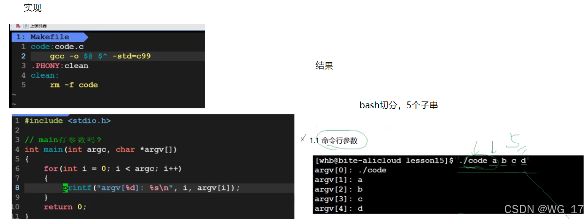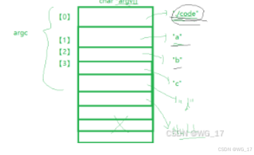 argv记录命令行的指针数组,把命令行打散然后放到指针数组内