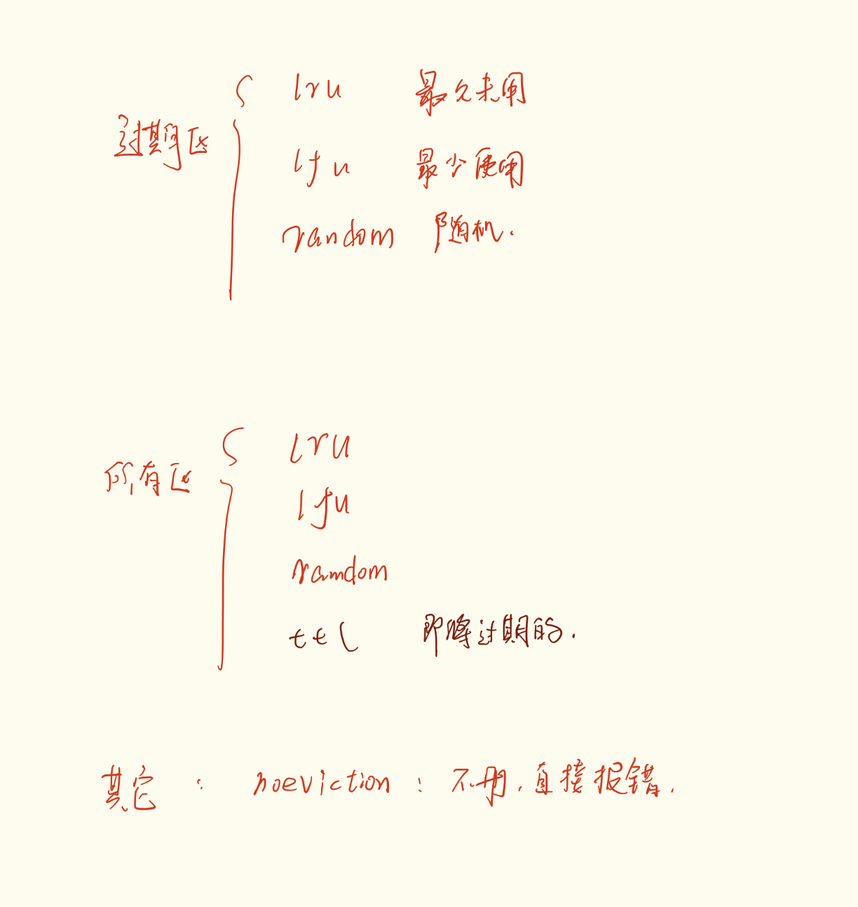 | volatile-random | 有TTL的 | 随机删除 | 极其少用。 |