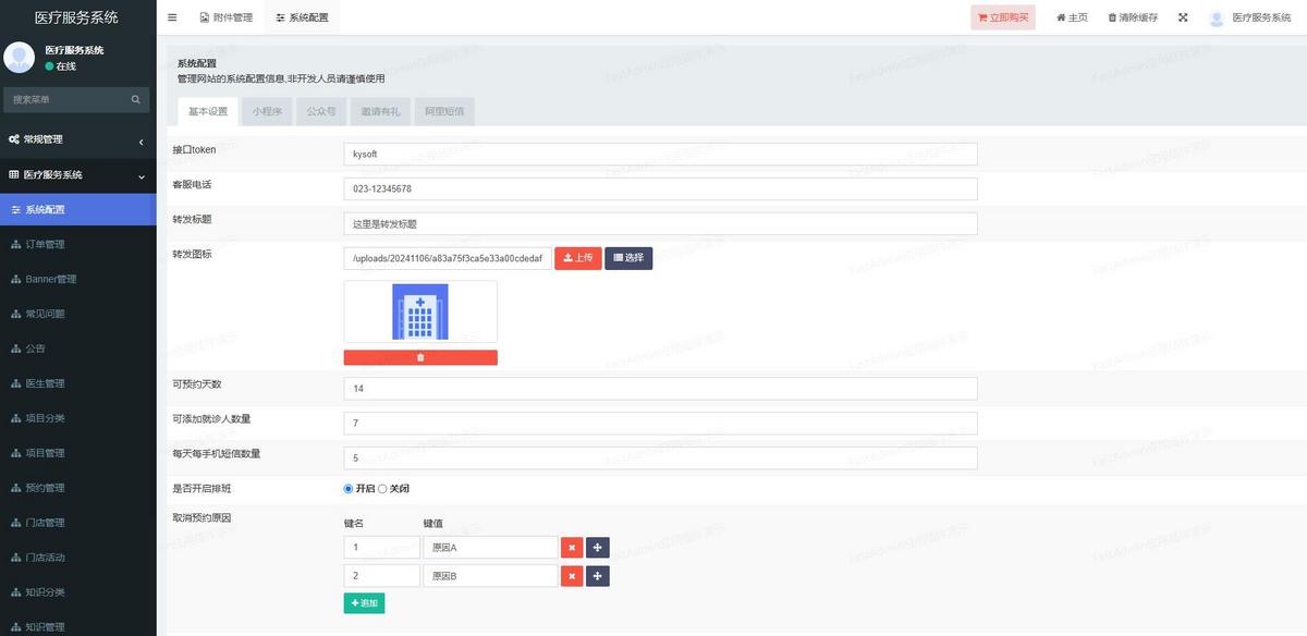 9、项目管理:价格设置、店铺设置、坐诊医生等