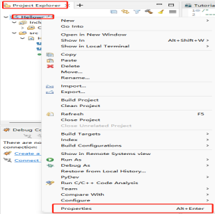 1)、在Project Explorer视图中,右键单击项目工程并选择Properties。打开"项目工程属性"对话框(如图1)。