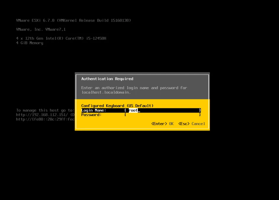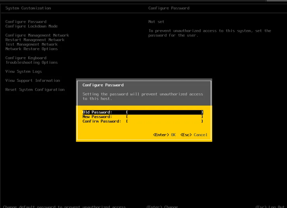 - 这时正常进入Esxi系统 ,按F2,提示输入密码时直接回车。此时密码为空,重新设置新密码即可。