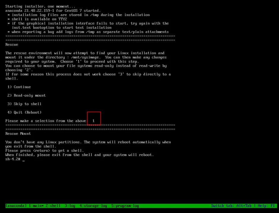 此时已经进入到了CentOS的救援模式,将要开始对VMware esxi进行密码找回了,请按照以下命令执