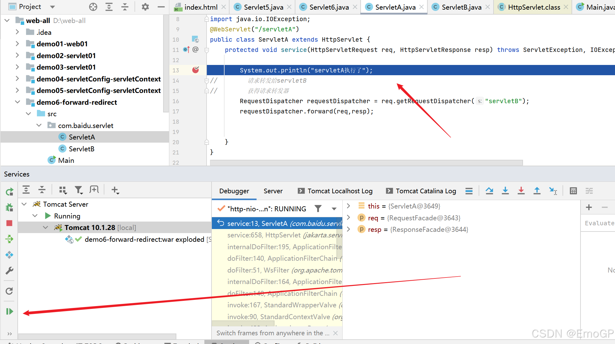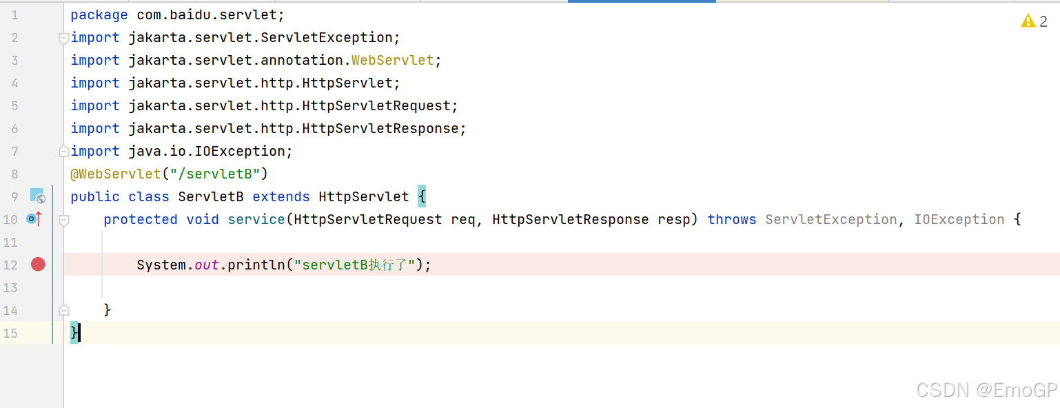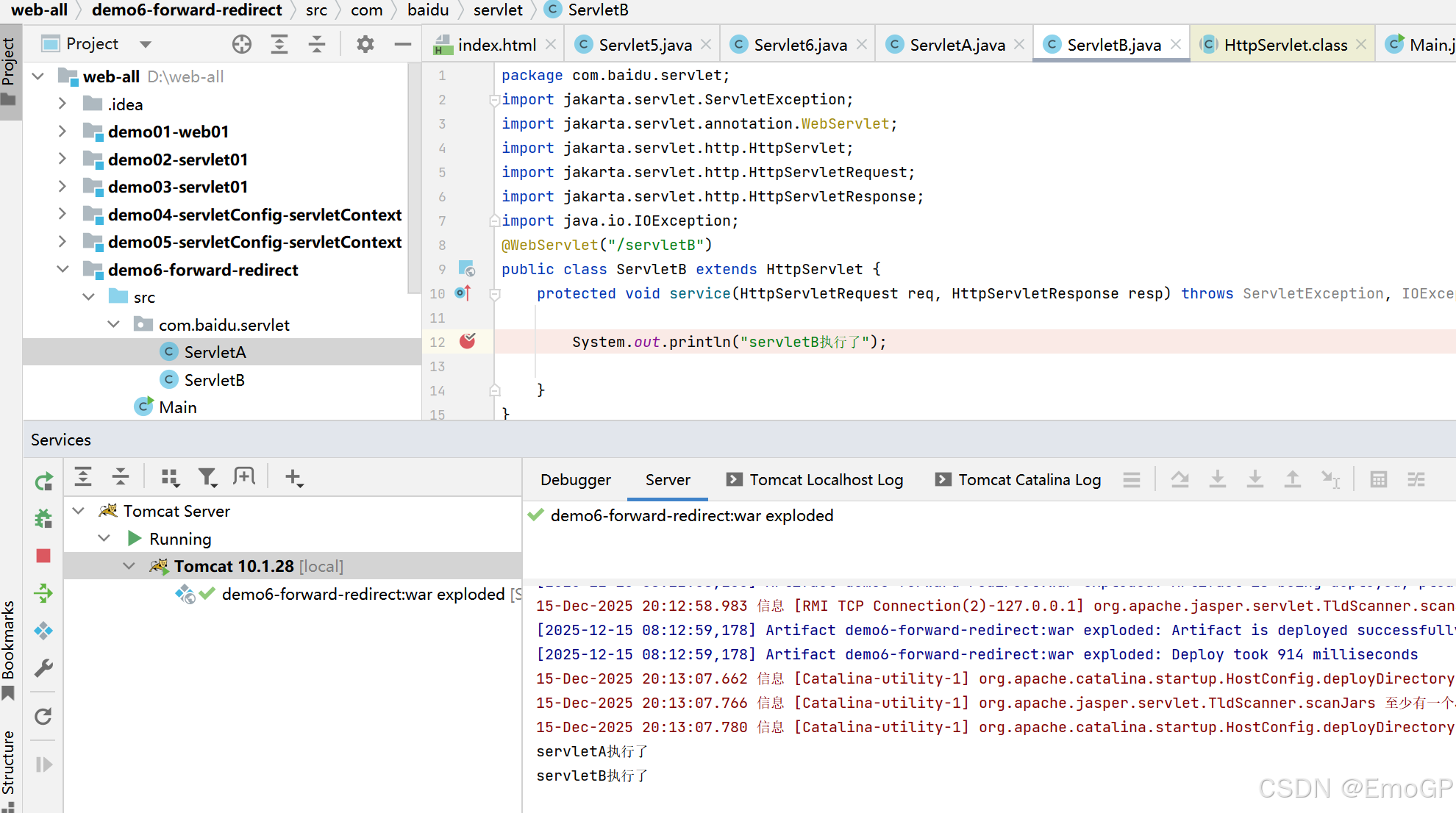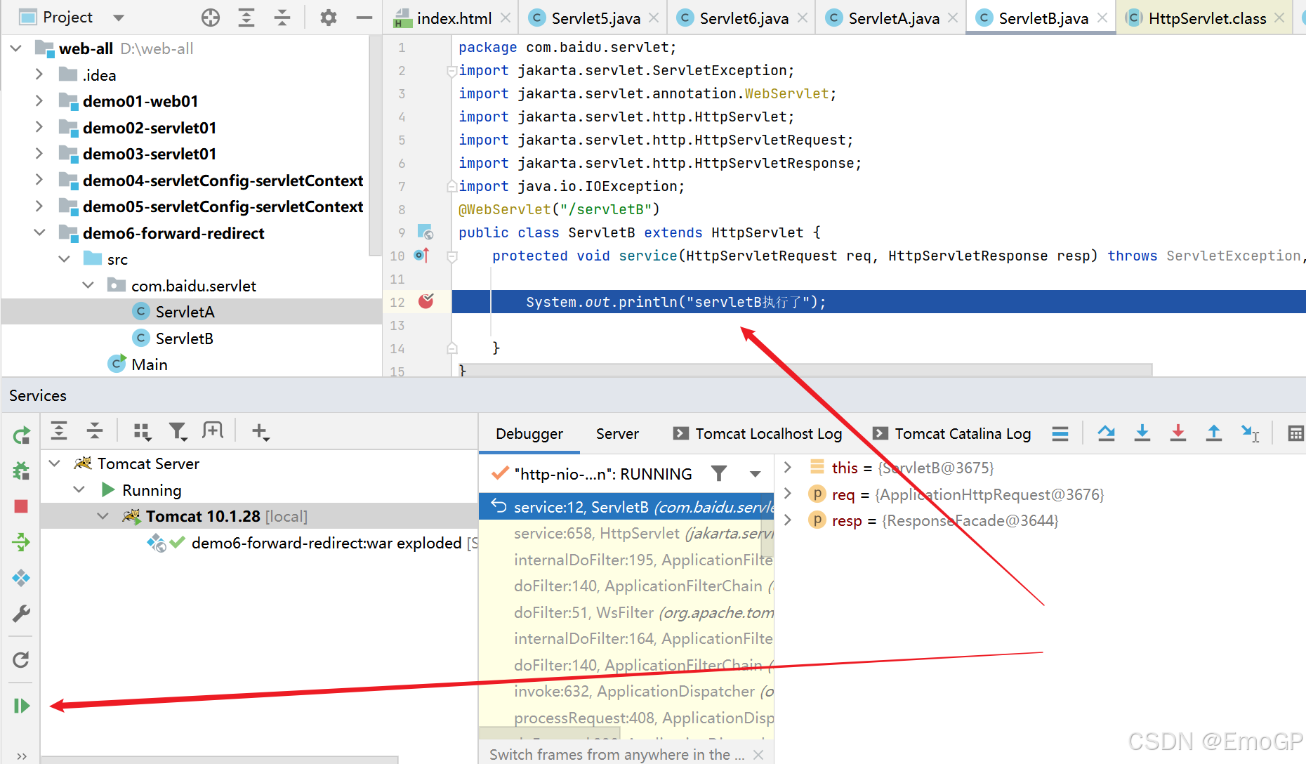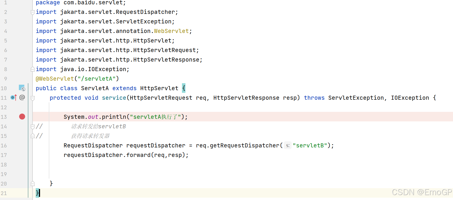 可以看到此时请求交给servletB执行