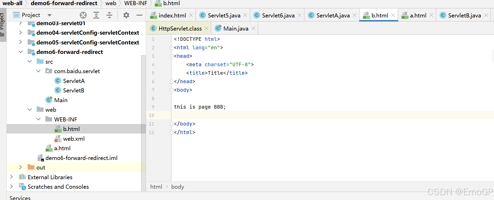 在WEB-INF下创建b.html