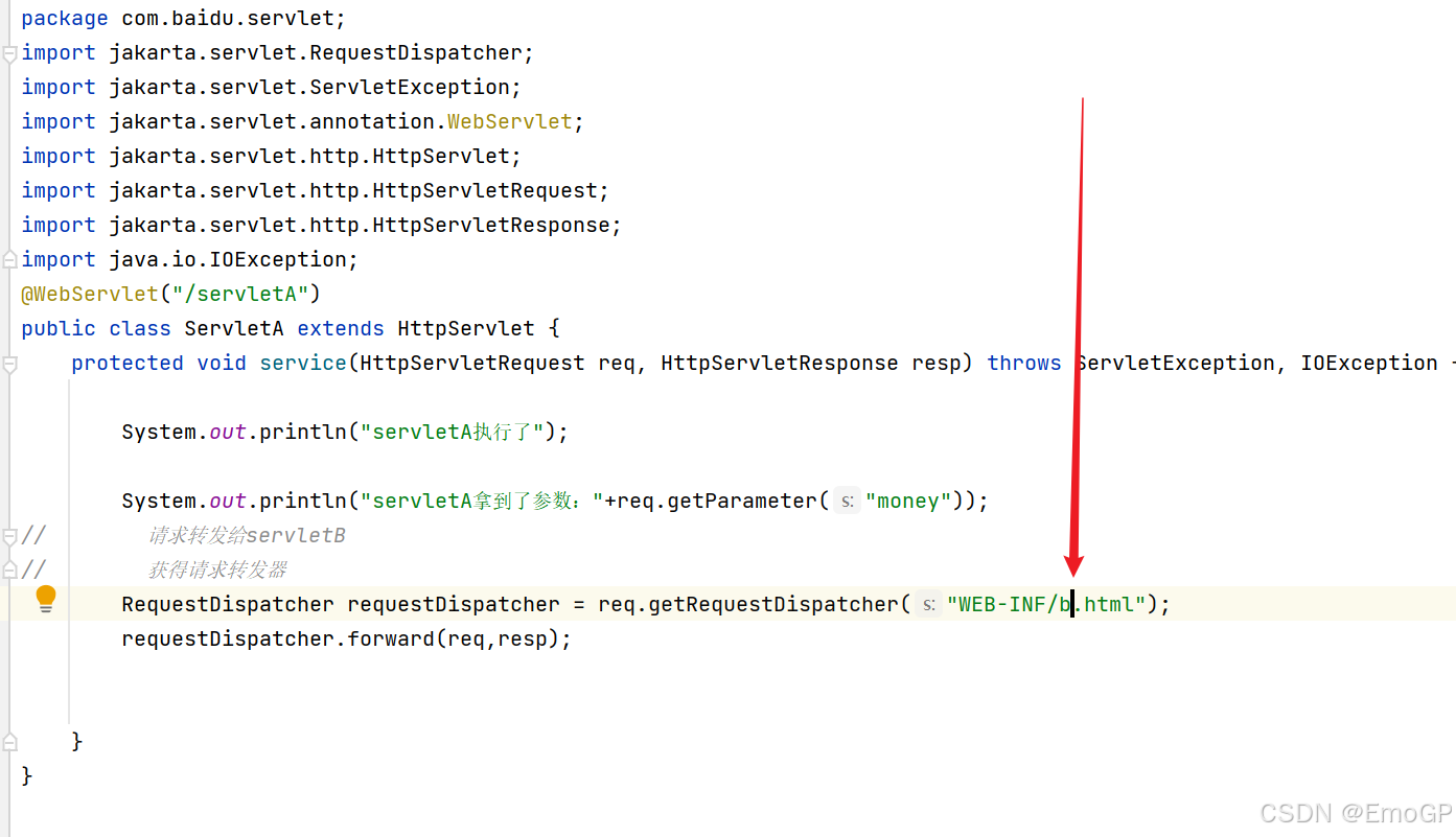 如果直接访问WEB-INF下的b.html,是不行的,但是请求转发可以