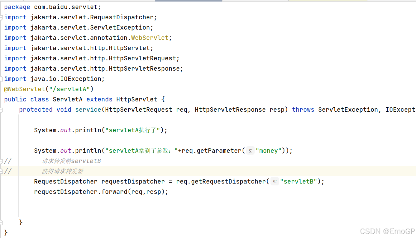 - 请求转发是通过HttpServletRequest对象实现的