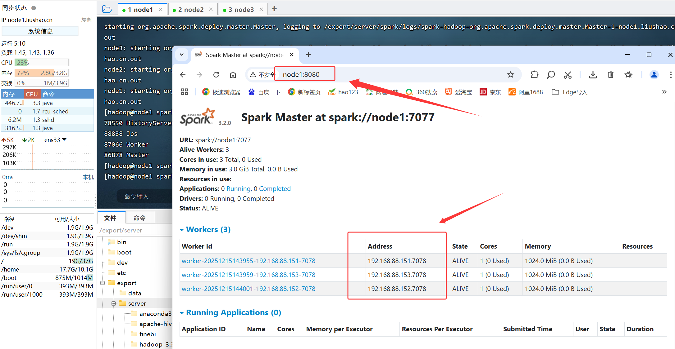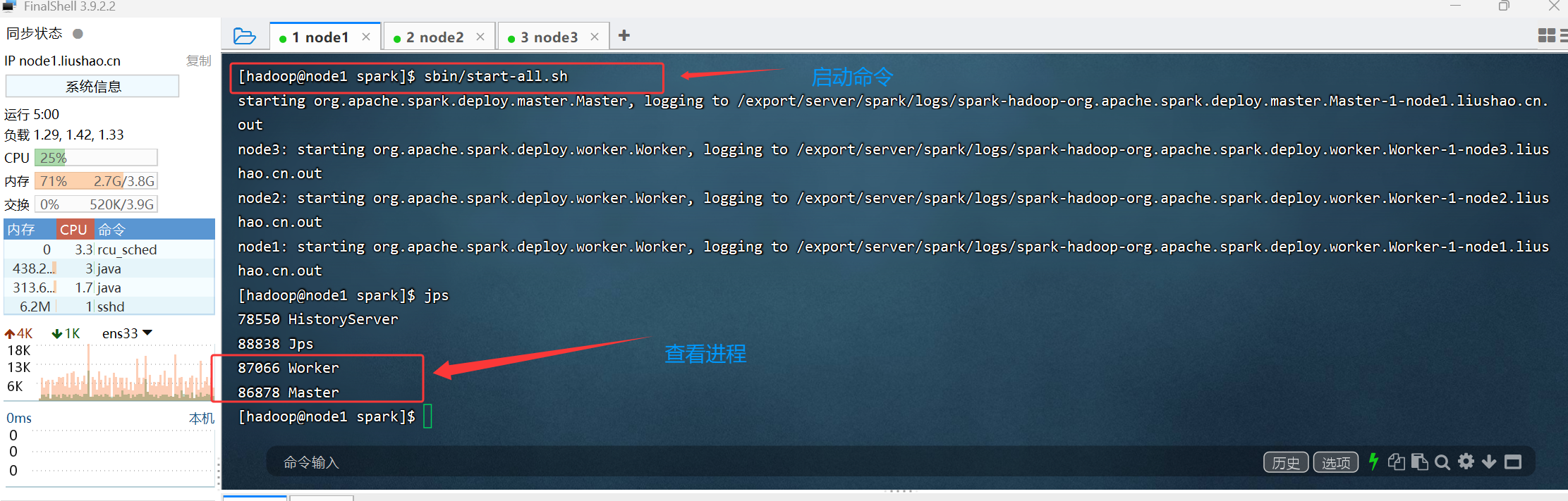 [hadoop@node1 spark]$ sbin/start-all.sh