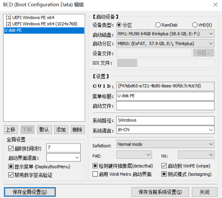 释放到U盘分区后,我们编辑U盘启动盘的EFI分区.主要是使用bootice编辑其中的BCD文件(路径为