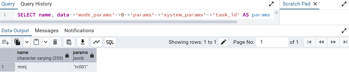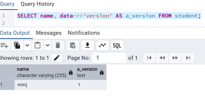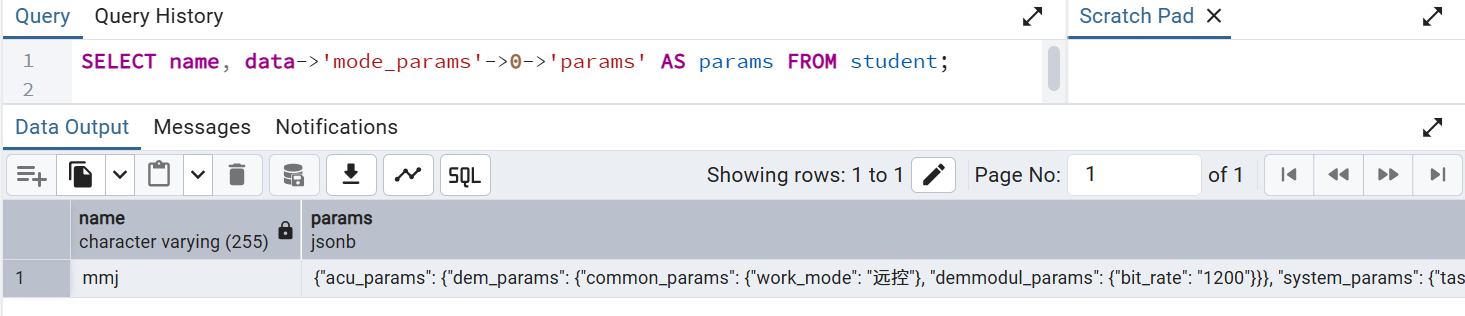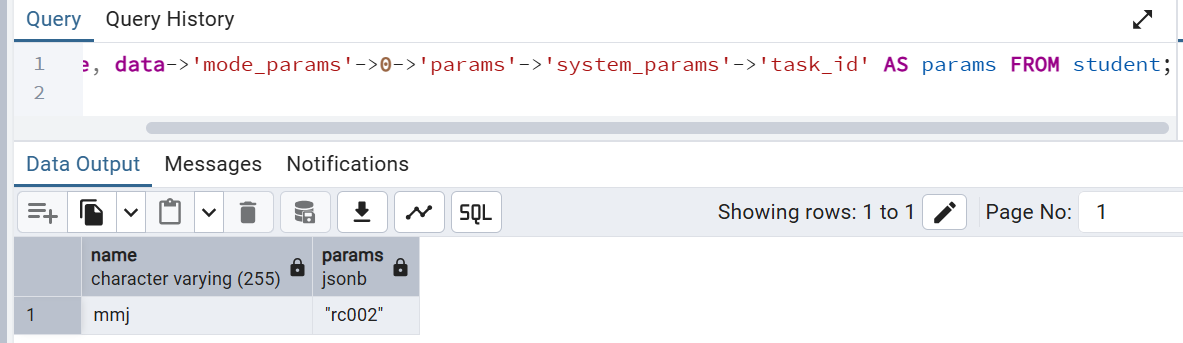SELECT name, data->'mode_params' AS mode_params FROM student;