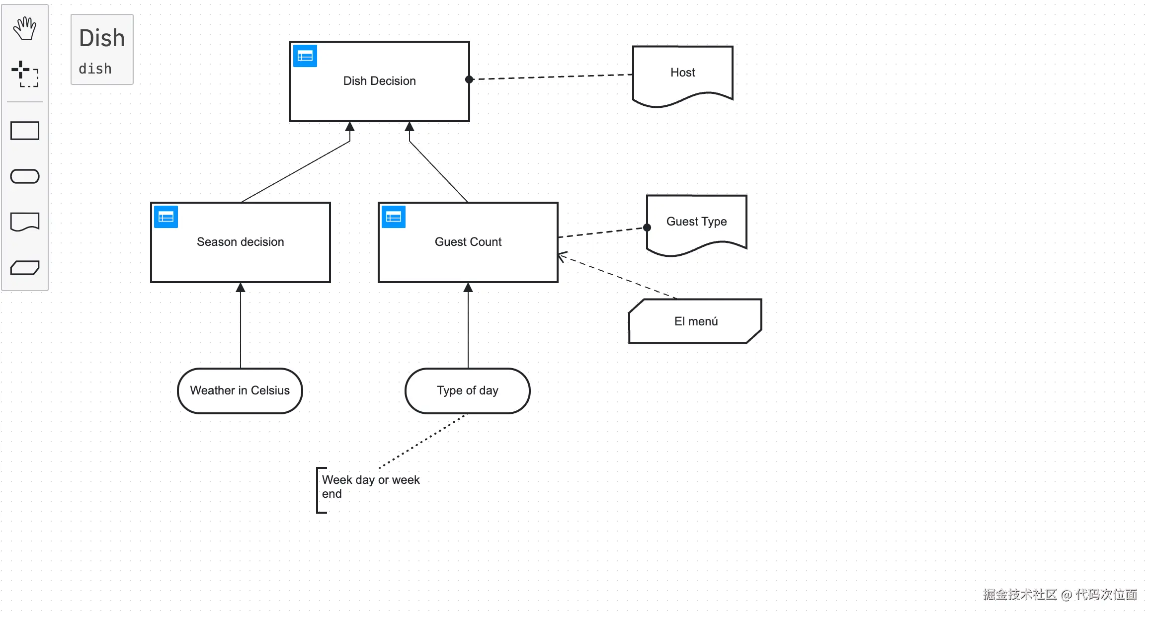 Season Dicision和Guest Count 以输出结果传递给Dish Decision决策表。