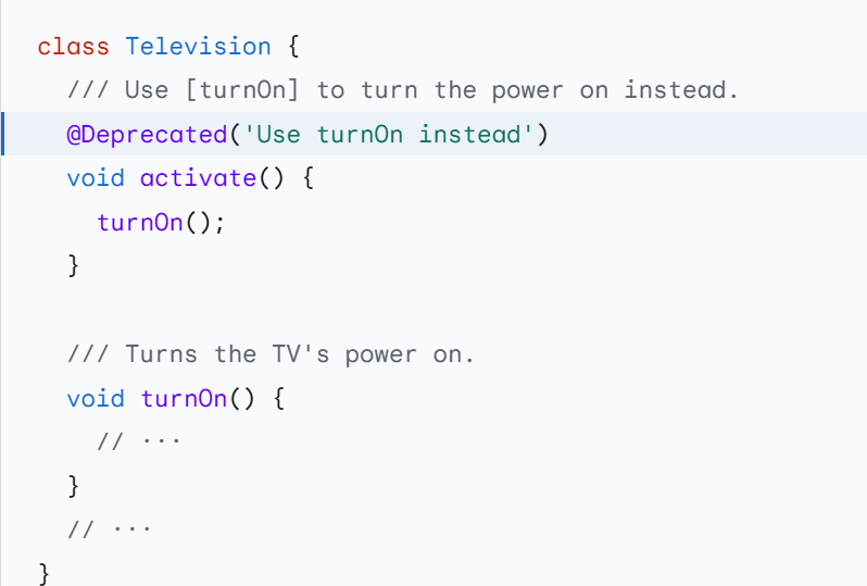 将声明标记为已弃用(deprecated),表示应该迁移该声明,并给出解释替换日期和潜在删除日期的消息。