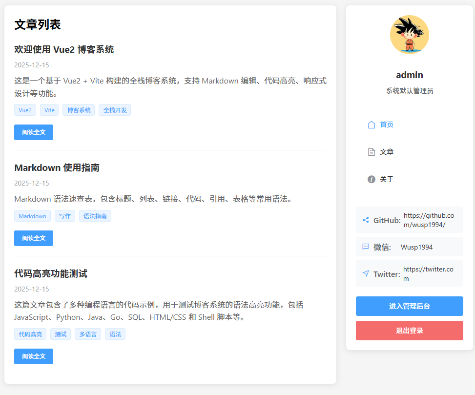 | 管理员(注册用户) | 增删改文章 + 改自己资料 |