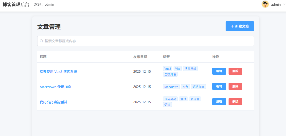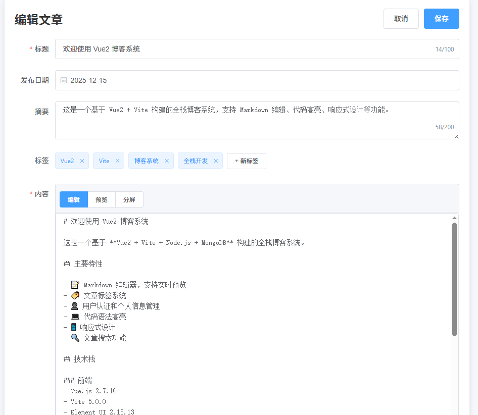 基于vite + nodejs + MongoDB + vue2 的博客发布系统