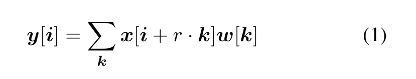 考虑二维信号,对于输出信号 y 上的每个位置 i 以及滤波器 w,会对输入特征图 x 进行空洞卷积操作: