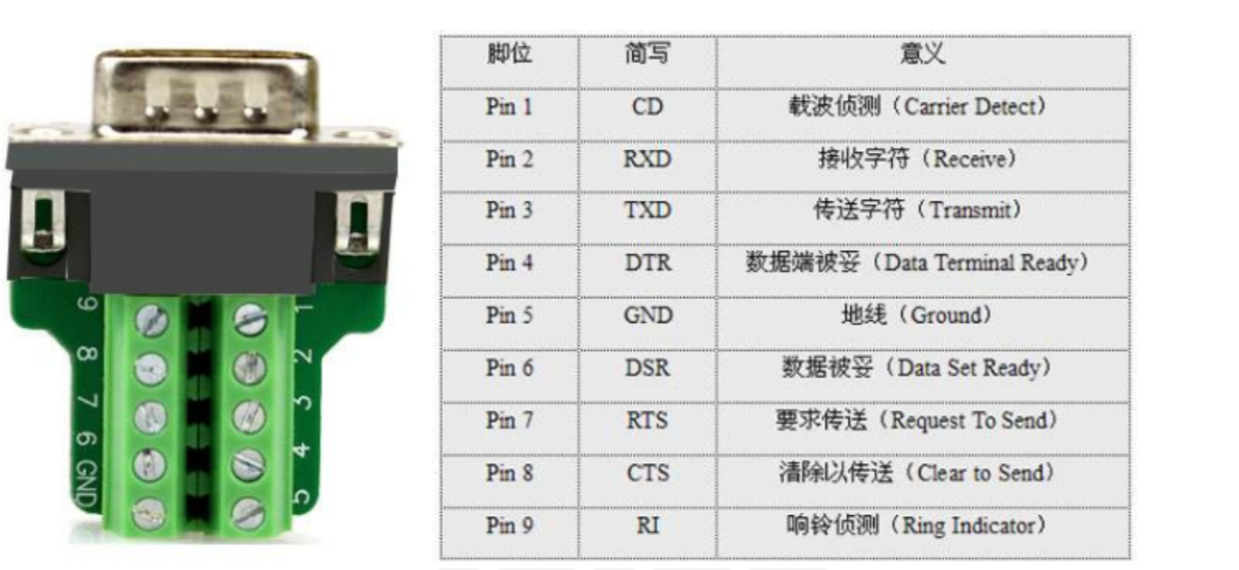 DB9针的每个针脚定义如下:(RS232通讯只需要用到2,3,5针脚)