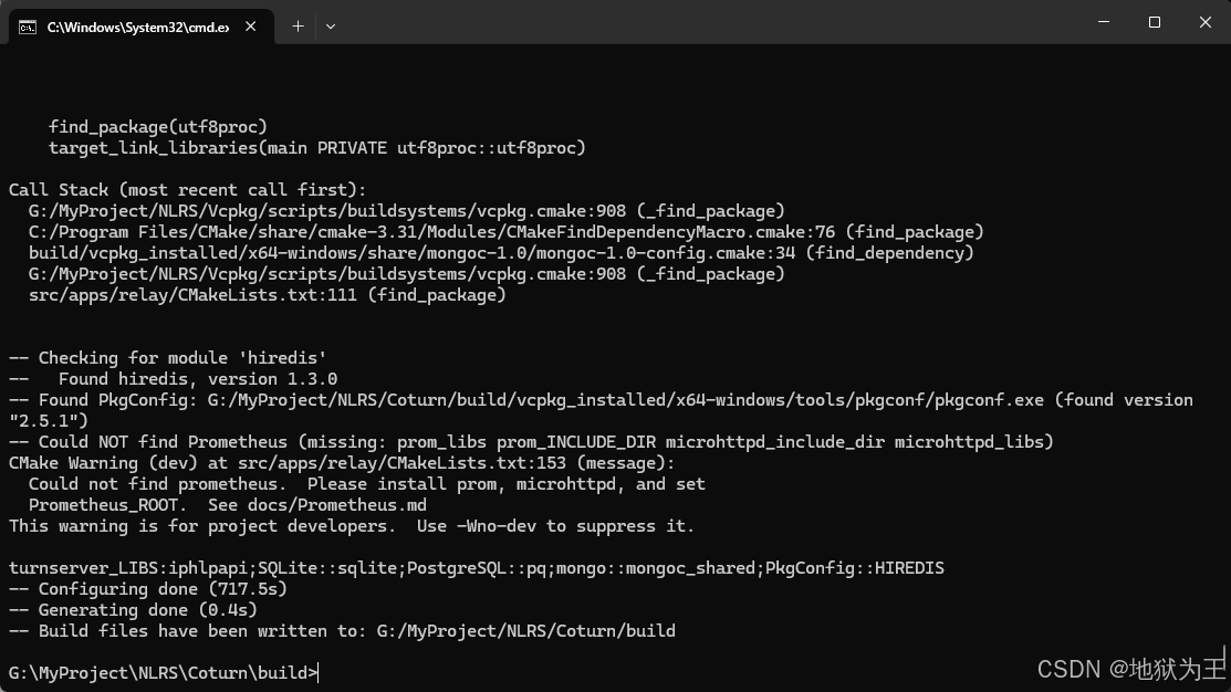 cmake.exe -G "Visual Studio 17 2022" -A x64 -DVCPKG_TARGET_TRIPLET=x64-windows -DVCPKG_BUILD_TYPE=release -DCMAKE_TOOLCHAIN_FILE:STRING="G:\MyProject\NLRS\Vcpkg\scripts\buildsystems\vcpkg.cmake" ..\