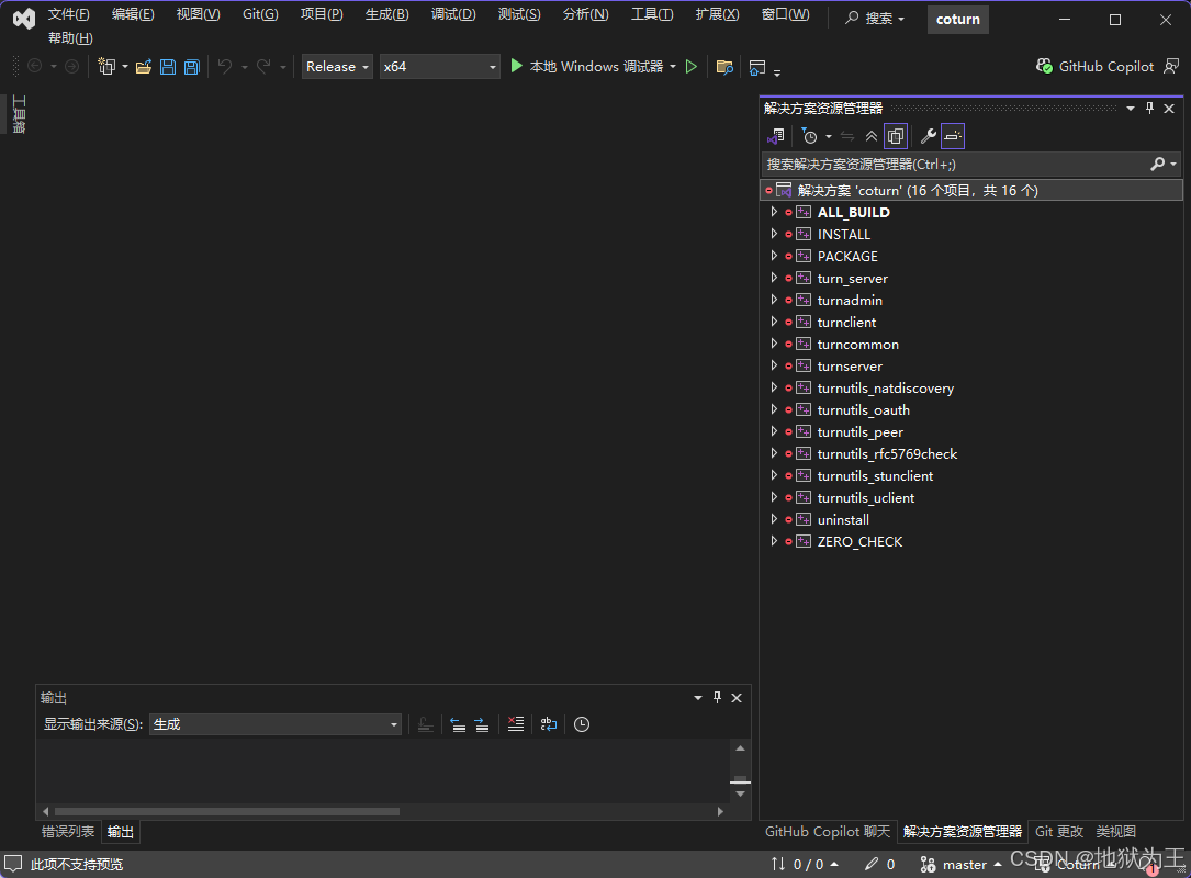 然后在build文件夹下打开coturn.sln 生成解决方案即可