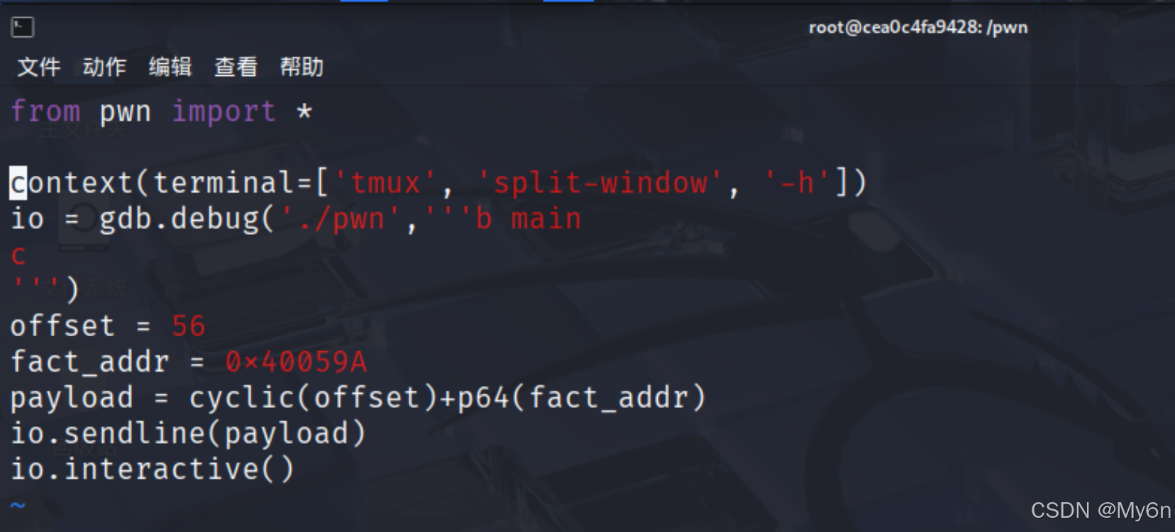 配置 pwnlib 上下文,告诉它使用 tmux 来分割窗口显示 GDB