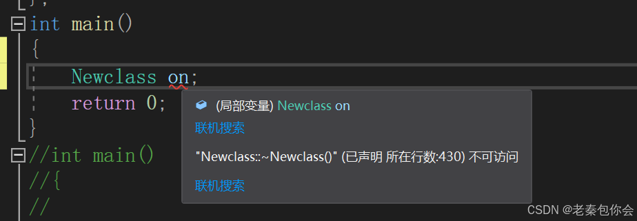 在一些情况下,也会有一些特殊的场景,比如析构函数不能正常使用等,代码如下: