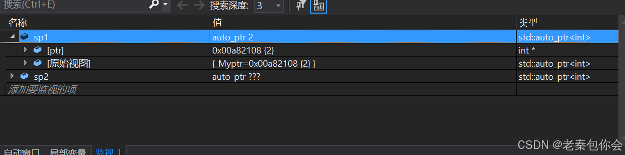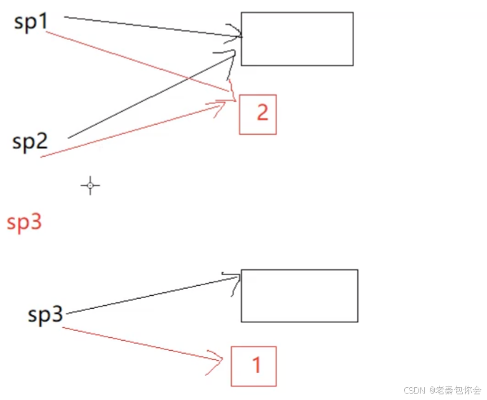 可以看到,sp1把资源给了sp2,也就是管理权转移,被拷贝对象把资源管理权转移给拷贝对象,被拷贝对象被悬空了,sp1不能访问了。