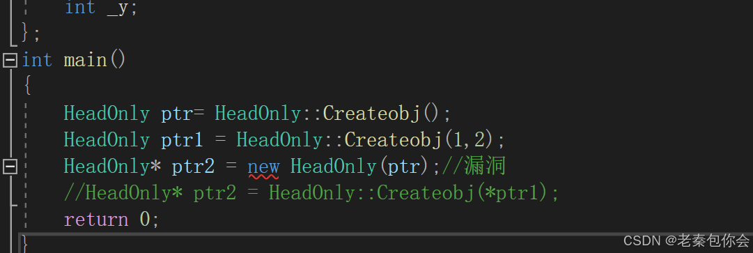 HeadOnly* ptr2 = new HeadOnly(ptr);//漏洞