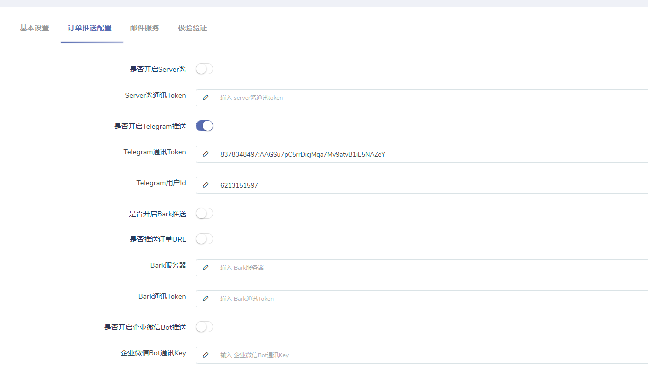 20、当前发卡网站中绑定的订单推送Telegram用户id为(答案格式:请按实际值填写)