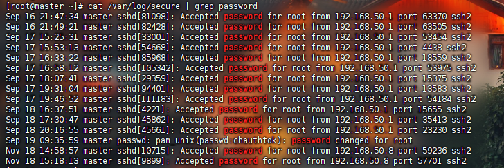 历史记录里面有命令,但是没有记录时间。查看/var/log/secure里面的内容,能找到