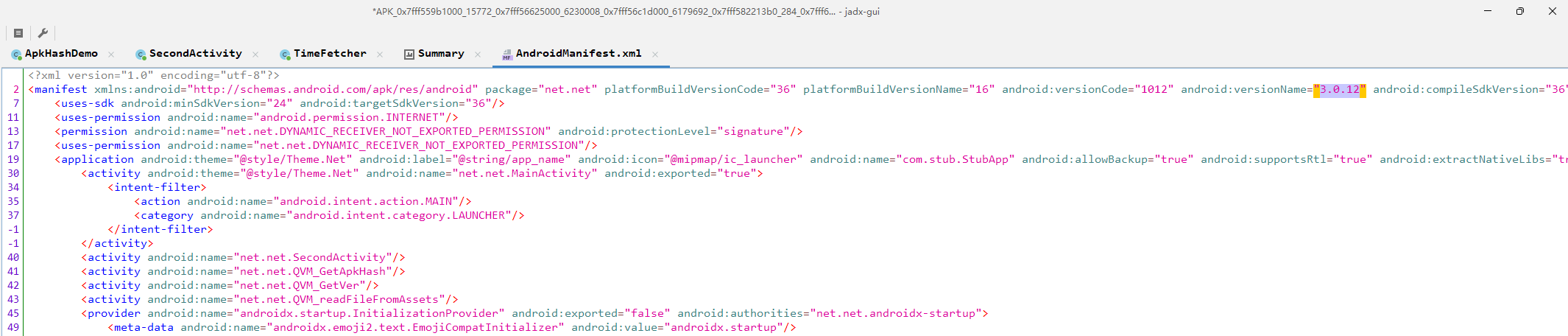 33、apk运行后getVer()的返回值是多少?(答案格式:1.0.0)