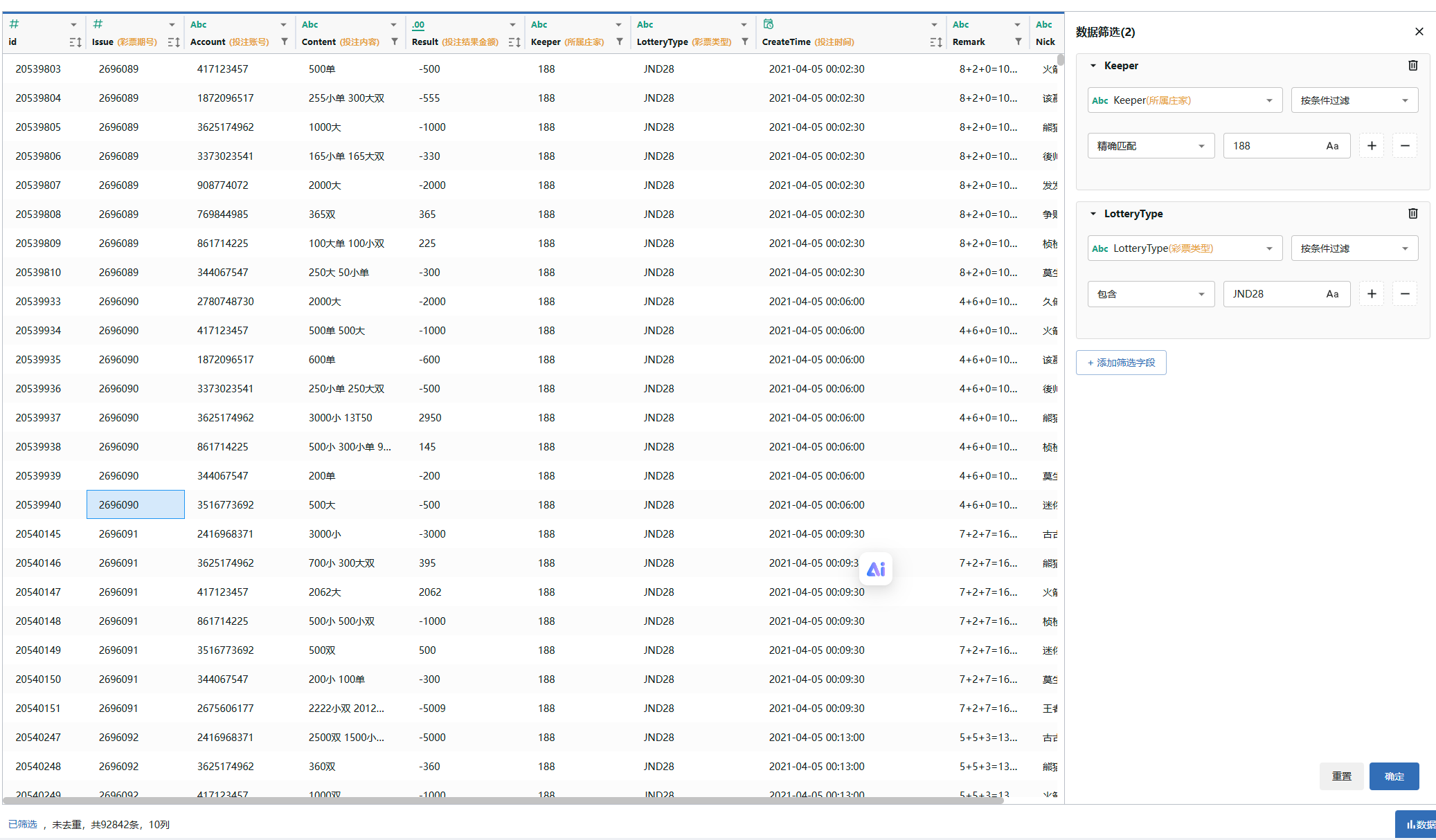 96、通过对检材"03-案件卡串号数据"表分析,该表每条数据的"卡串号(IMSI)"字段值存在问题,不可信。真实可信的卡串号值在"溯源"字段中(溯源字段的值格式均为"{手机号=[待获取的卡串号->手机卡串号(IMSI)使用过的手机号->当前]}"),请统计分析出该表中哪个真实卡串号出现过的次数最多?(答案格式:按照实际情况填写)
