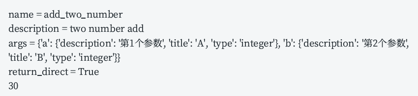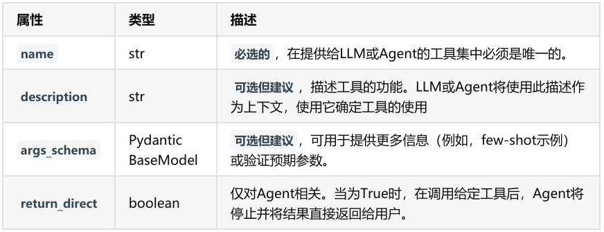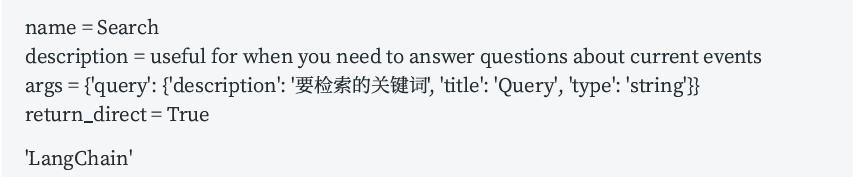 • return_direct :是否应将工具结果直接返回给用户(仅对Agent相关)