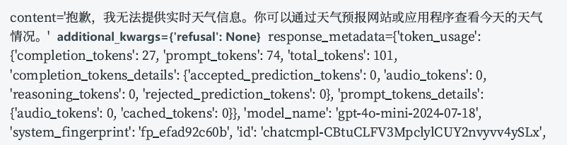 如果模型认为无需调用工具(例如用户输入与工具无关),返回的message 会是普通文本回复: