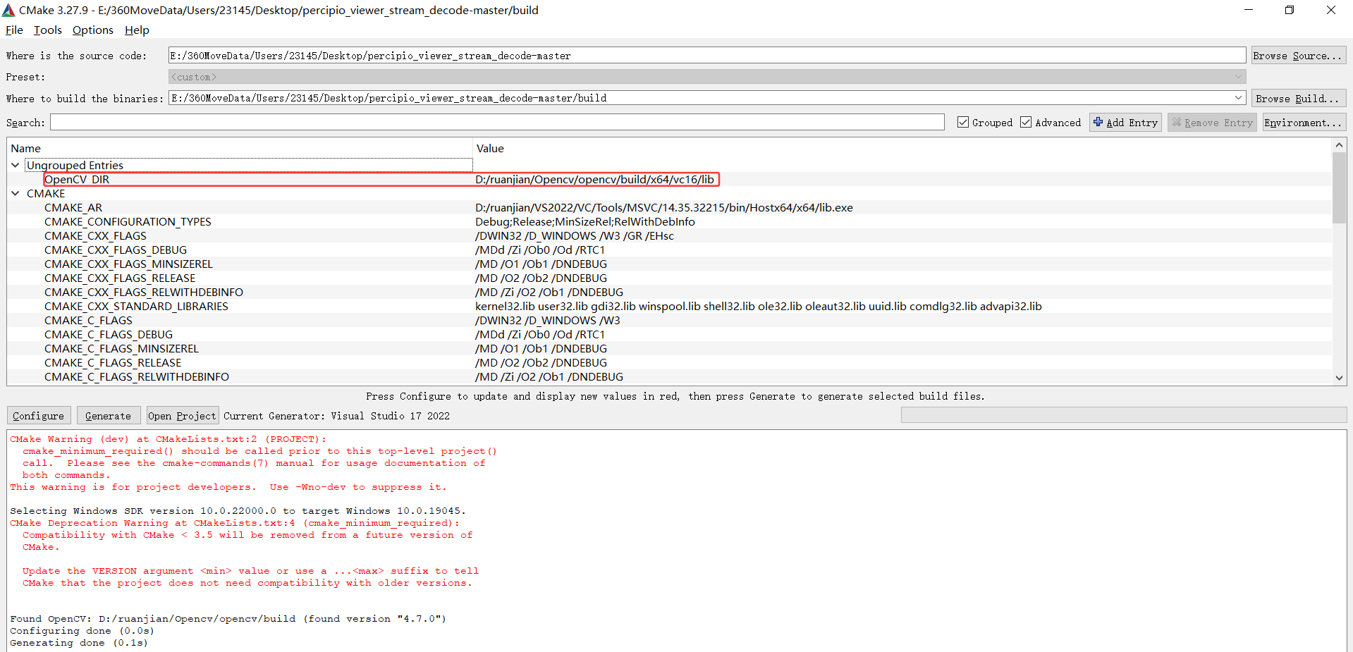 在使用Cmake进行编译时,需要引入Opencv路径