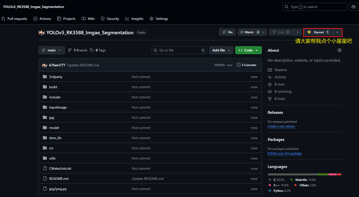 我已经帮大家做好了所有的环境适配工作,科学上网后访问博主GitHub仓库:YOLOv5_RK3588_Imgae_Segmentation ,进行简单的路径修改就即可编译运行。