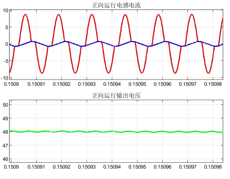 不得不说,这个对称双向半桥LLC谐振变换器双向运行仿真模型的输出效果真的很棒,而且效率还高。通过Matlab/Simulink搭建整个模型后,从展示图中就能清晰看到各项性能指标。比如说输出电压能够稳定地跟踪设定值,波动极小。而且在不同的负载条件下,变换器都能高效地运行,保持较高的功率因数。