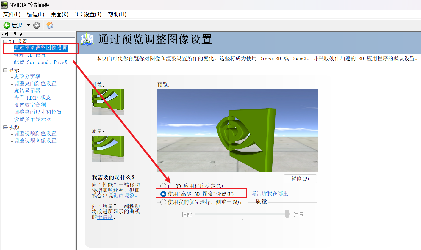 2、管理3D设置