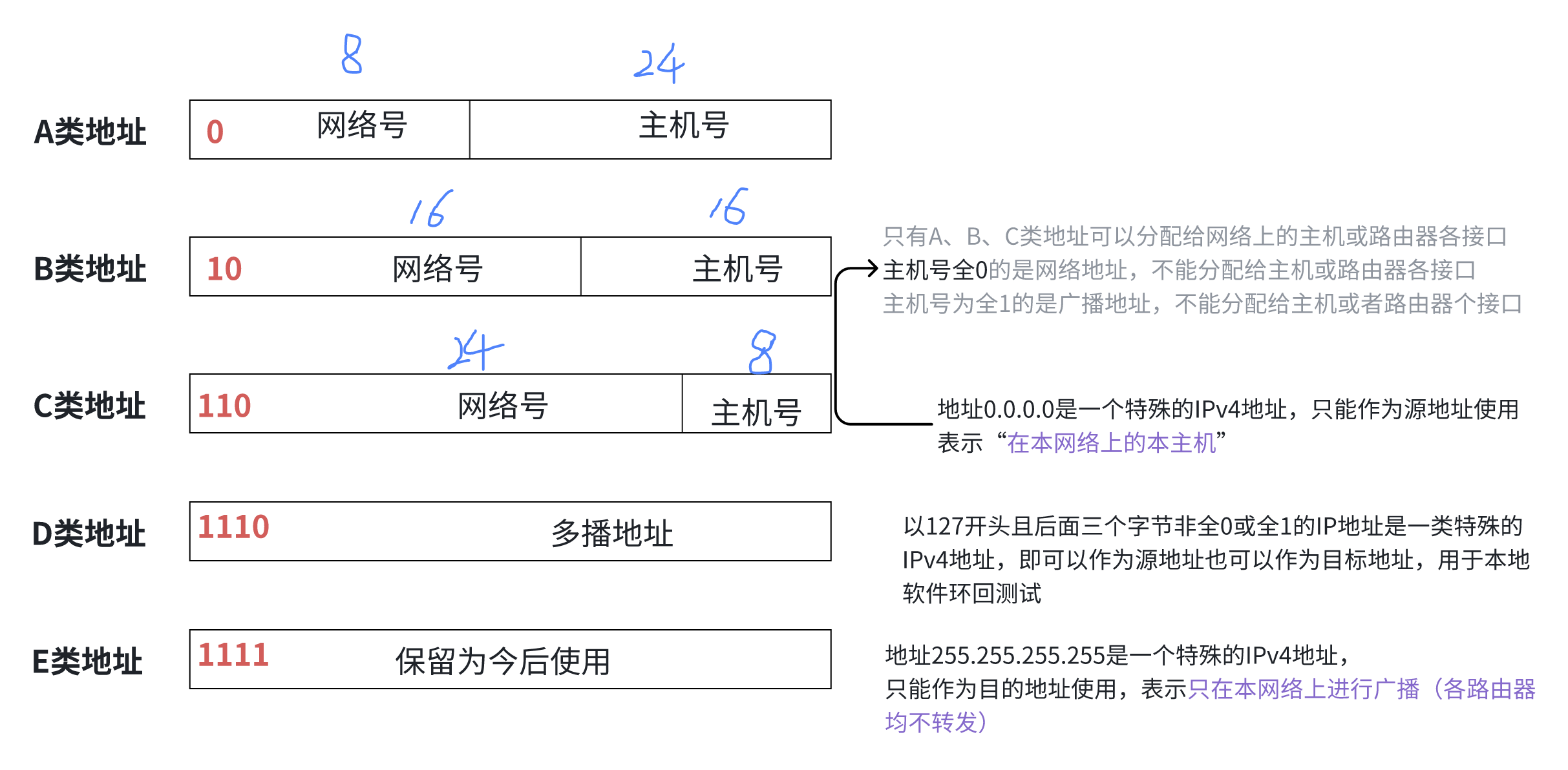 最小网络号0,保留不指派