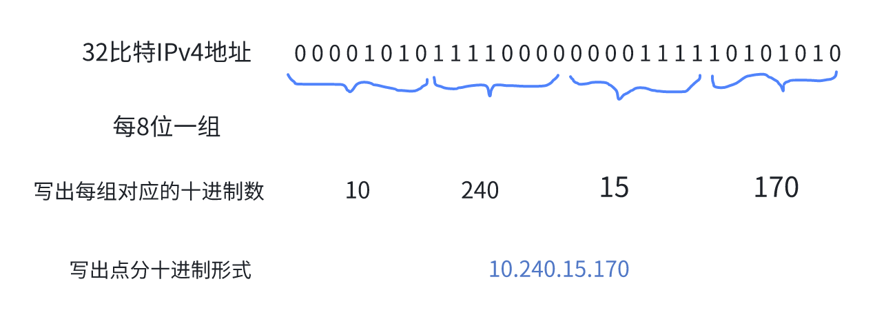 由于32比特的IPv4地址不方便阅读等,采用点分十进制表示方法以便使用。