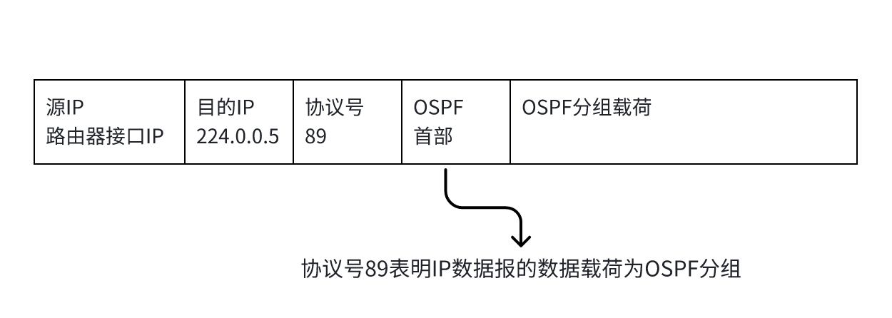 Hello分组封装在IP数据报中,发往组播地址224.0.0.5;